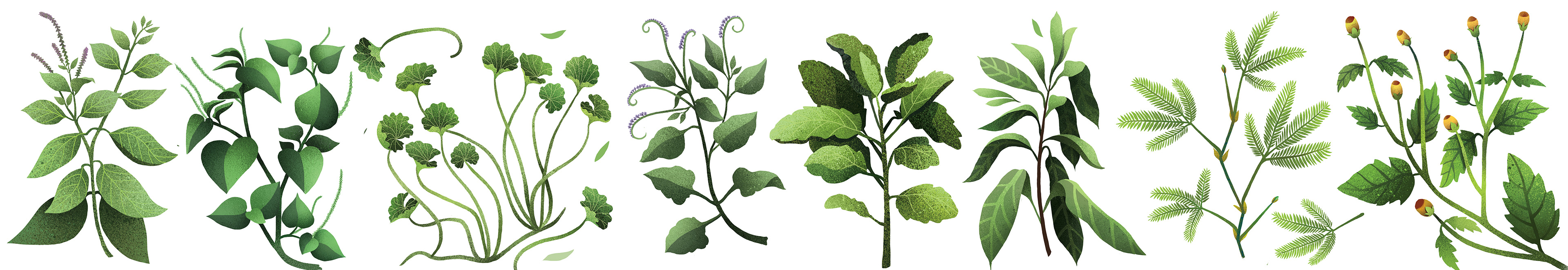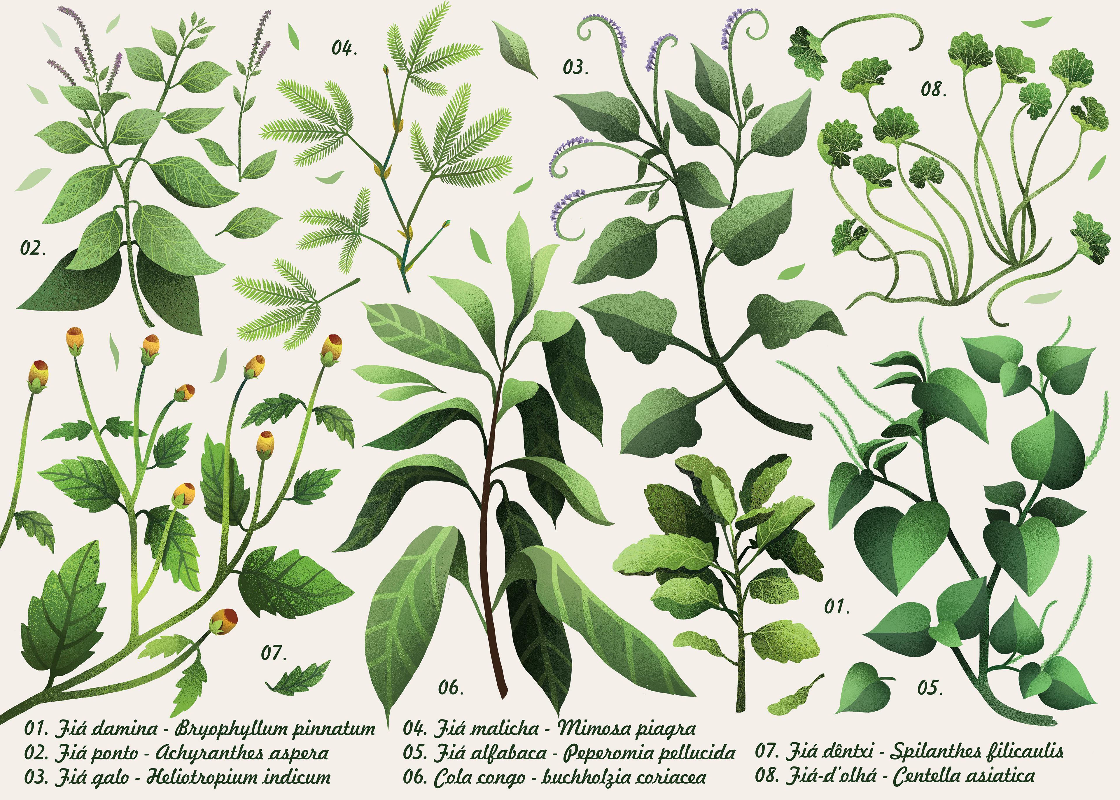 Illustration set of medical plants from island Sao Tome and Principe, Africa.